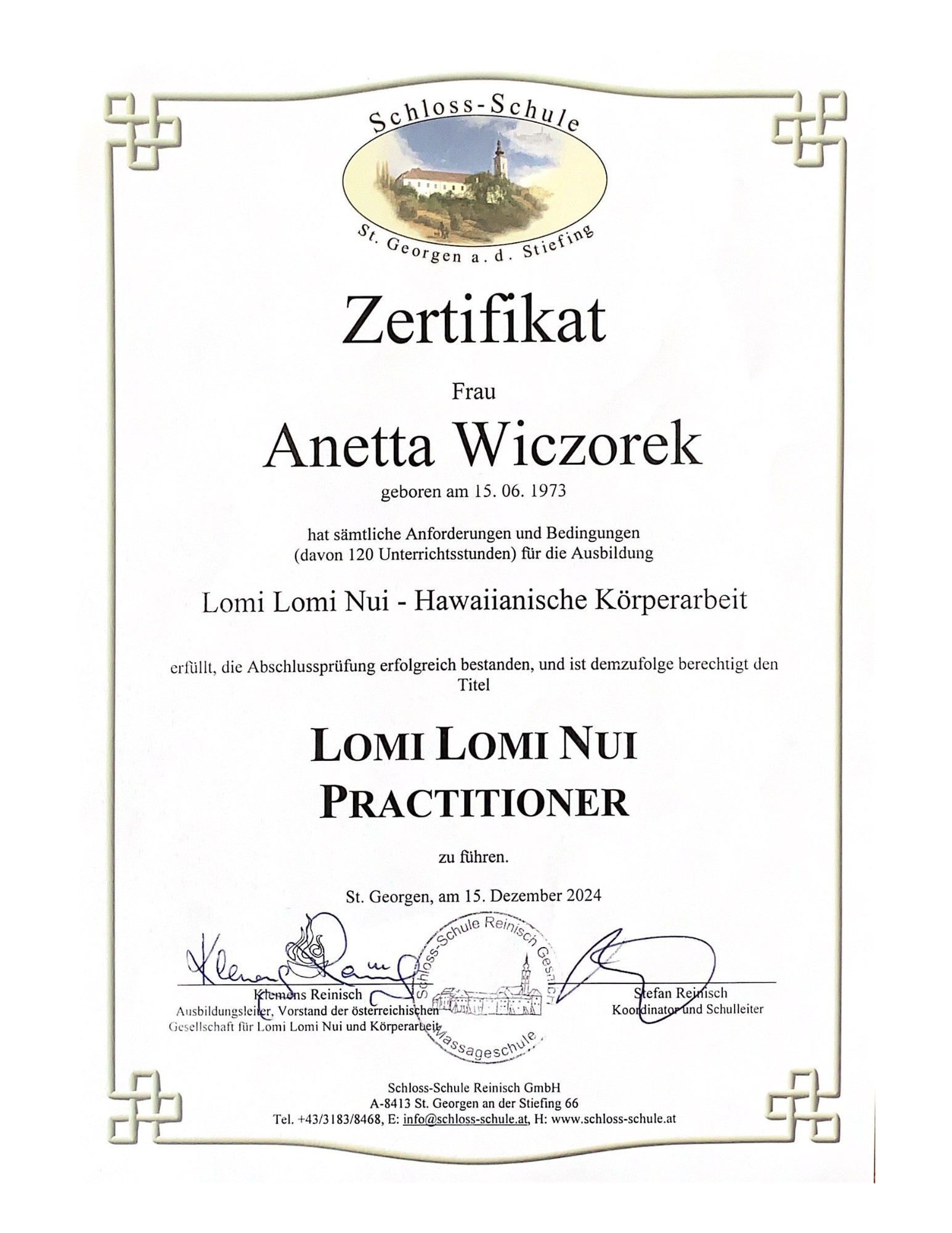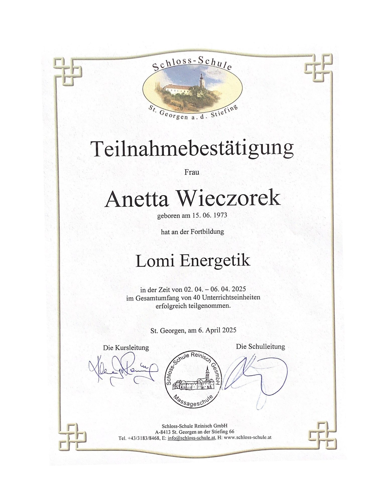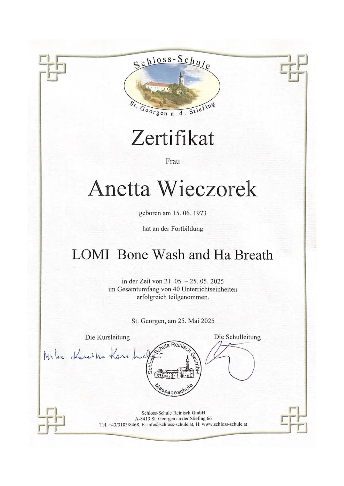 Lehrer für verschiedene Formen der Körperarbeit und Massage (Schloss-Schule St. Georgen an der Stiefing)